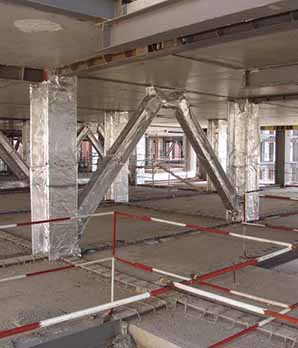 С целью увеличения огнестойкости защитными средствами облицовываются опоры, лестничные марши, своды, прогоны, балки, фермы, крепления и иные детали необогреваемой части основания. Эти меры позволяют значительно снизить скорость распространения огня при пожаре.